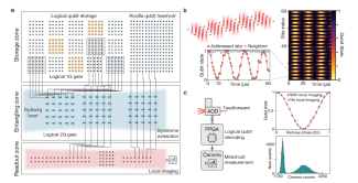 Figure 2. A schematic of a programmable logical processor based on reconfigurable atom arrays, showing how logical qubits can be efficiently controlled and entangled within different zones to perform complex error-corrected algorithms.